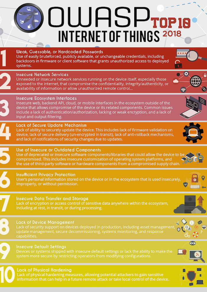 The OWASP IoT Top 10 list actually ranks hardcoded passwords as the number-one vulnerability in IoT, followed closely by insecure network services exposed on these devices. Many IoT products run lightweight web interfaces or old protocols (Telnet, UPnP, etc.) that lack encryption and authentication. These unnecessary services dramatically expand the attack surface, often listening openly on the internet for any would-be intruder.